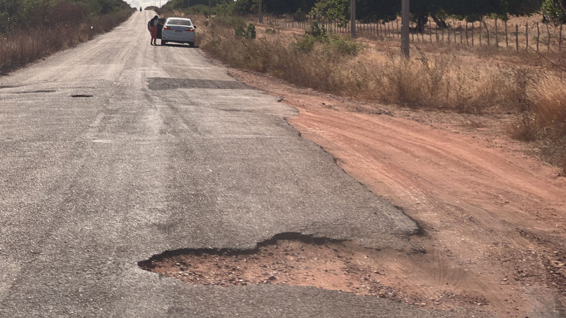 A ausência de manutenção frequente resultou em buracos profundos, trechos com lama e áreas de erosão. Em vários pontos, a pista fica parcialmente comprometida, obrigando motoristas a invadir a contramão para evitar danos aos veículos. Essa prática aumenta o risco de colisões frontais, principalmente em curvas ou trechos de visibilidade limitada.
